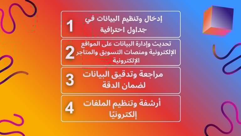 نوفر خدمات إدخال البيانات بدقة وسرعة لتعزيز كفاءة أعمالك وتنظيم معلوماتك.
