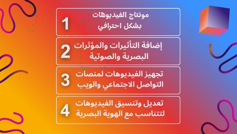 نوفر خدمات تحرير الفيديو لإنتاج محتوى جذاب واحترافي يعزز تفاعل الجمهور مع علامتك التجارية.